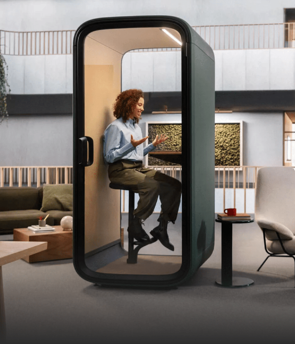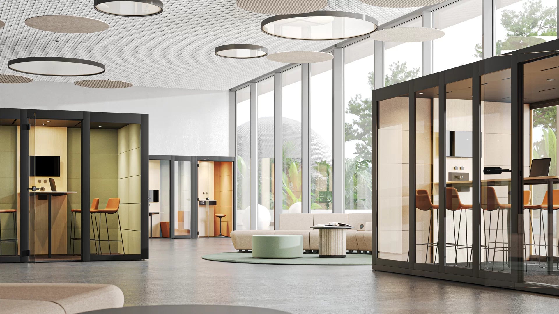 Die Smart Pods von framery verfügen über eine zum Patent angemeldete Akustik, adaptive Belüftung und videooptimierte Beleuchtung – alles verstärkt durch neuste Technologie.