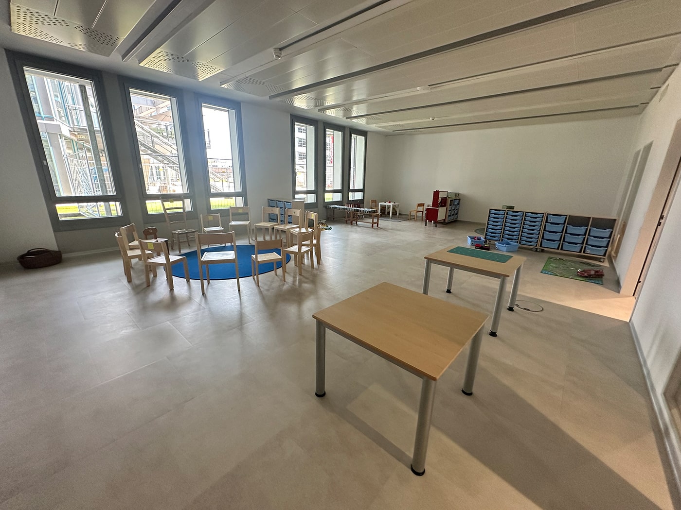 Für die Erweiterung der Kleingruppenschule Furttal lieferte kibemo massgeschneiderte Kindergarten- und Garderobeneinrichtungen, die für ein flexibles und praktisches Umfeld sorgen.