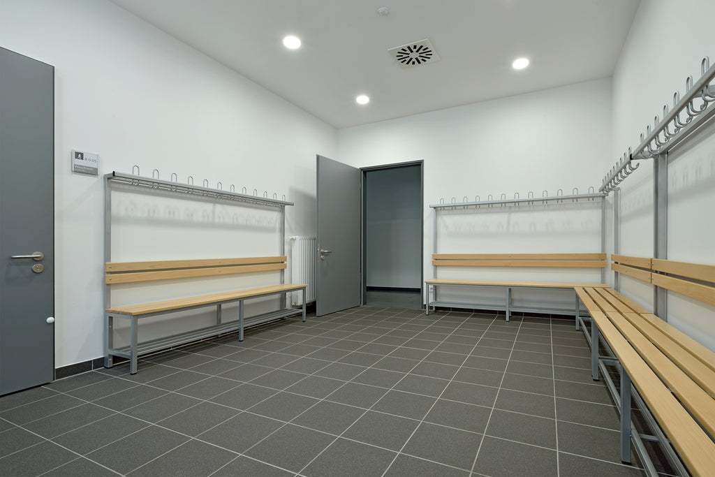 Die Garderobenbank mit Rückenlehne bietet eine robuste und platzsparende Lösung für Schulumkleiden. Gefertigt aus hochwertigen Materialien, gewährleistet sie Langlebigkeit und einfache Reinigung. Das zeitlose Design fügt sich harmonisch in jede Schulumgebung ein und optimiert den verfügbaren Raum effizient.