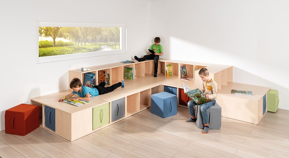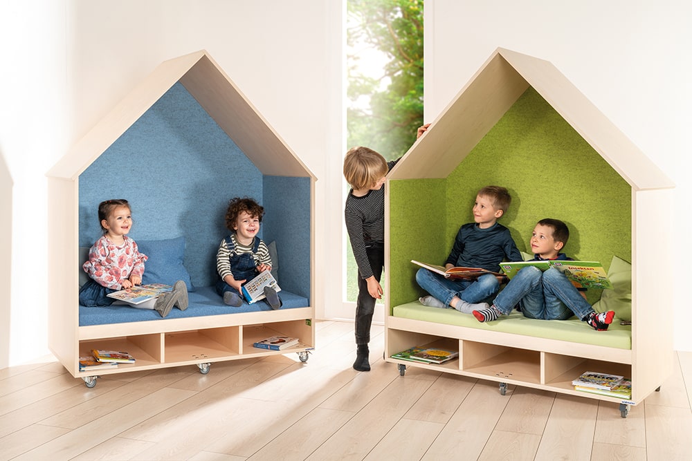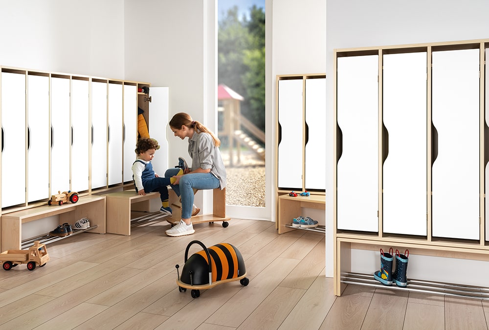 Langlebige Materialien und eine ressourcenschonende Herstellung stehen im Fokus der Modern Line. So entstehen Möbel, die den Alltag in Krippen, Kindergärten und Schulen langfristig unterstützen.
