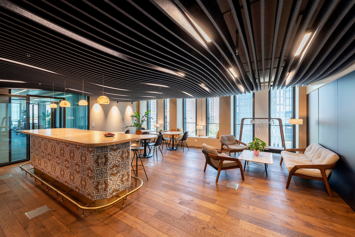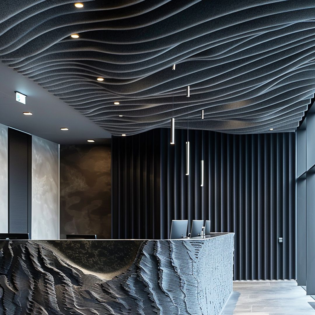 Akustikelemente aus langlebigem Filz mit hohem Recyclinganteil verbinden edles Design mit funktionaler Wirksamkeit.